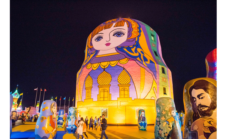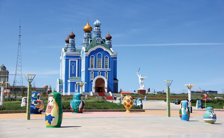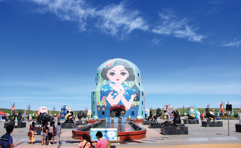 满洲里俄罗斯套娃广场是全国唯一的运用俄罗斯传统工艺品,以套娃为主题的旅游休闲娱乐广场,集中体现了满洲里中俄蒙三国交界地域特色和中俄蒙三国风情交融的特点。广场规划面积54万平方米,主题广场面积6万平方米,主体建筑是一个高30米的大套娃,建筑面积3200平方米,是目前世界上最大的套娃。套娃外部彩绘由代表着中俄蒙三国的美丽女孩组成,主体套娃周围有8个功能性套娃、200个代表全世界不同国家和地区的小套娃和30个色彩缤纷的俄罗斯复活节彩蛋。在广场音乐喷泉的周围还有代表中国传统文化的十二生肖和西方占星文化的十二星座。俄罗斯套娃广场将中俄蒙三国风情和东西方文化完美的融合在一起,是集旅游观光和趣味性、娱乐性为一体的满洲里标志性旅游景区。