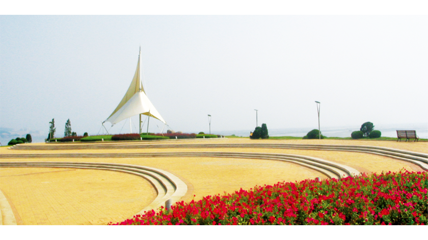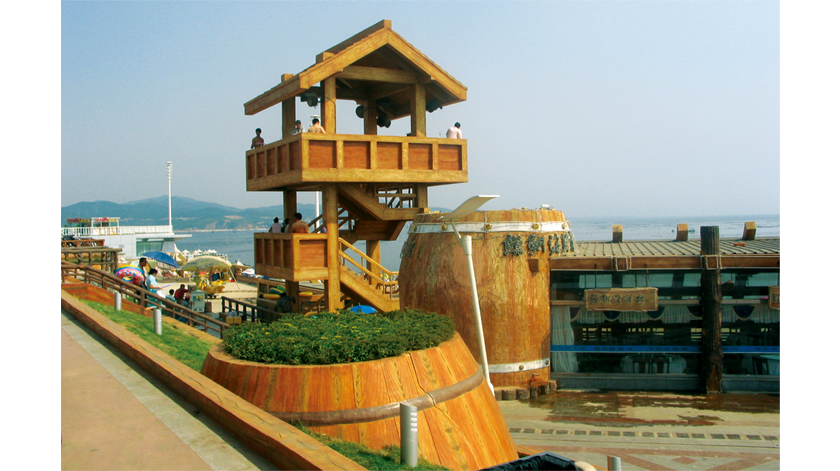 南砣子海滨浴场是大连开发区开发海景资源的一项大型工程。海滨浴场及滨海路沿线设计是大连滨海景观的特点。不落俗套的总体布局 , 特设小品细部处理、 优美的绿化植栽 , 还有气势恢弘的恐龙造型似乎告诉人们大连是一块栖息生活的好地方。